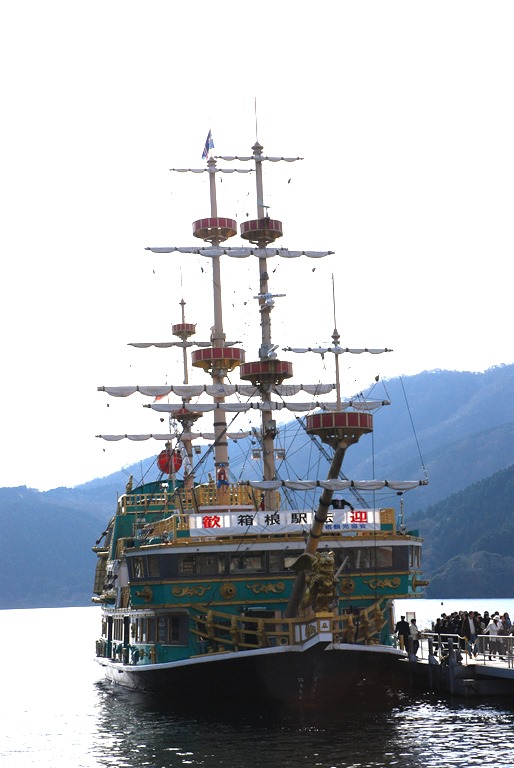 - 芦之湖:芦之湖(日语:芦ノ湖/あしのこ Ashi no ko)是位于神奈川县足柄下郡箱根町,箱根山的火山湖。大约形成于三千年前,是神奈川县内面积最大的湖泊。芦之湖是一个非常知名的观光地,是远望富士山的名所。芦之湖上有游船提供观光客乘船游览。此外,芦之湖也是一个垂钓的好去处,湖中主要的垂钓鱼类有虹鳟、黑鲈等。芦之湖上的渡轮,因外型模仿海盗船而得名。除模仿海盗船外,渡轮还模仿英国的战船。芦之湖海盗船靠岸的港口分别是元箱根港和箱根町港。