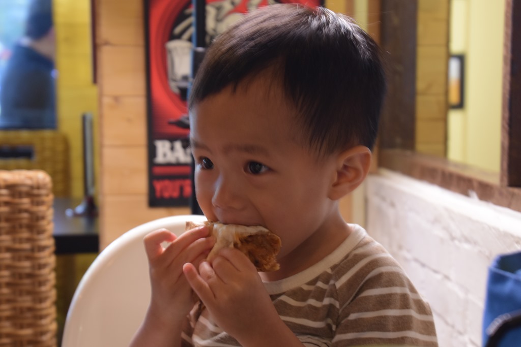 原来卡莎蒂亚是墨西哥酥饼的意思,想吃圆形披萨的人小心不要点错啰!这酥饼皮非常脆很不赖~里面干酪很多,会小牵丝,瞧儿子吃的很专心喔,经历殖民时代,欧洲与中南美洲融合料理方式,香料运用的多元与口味的层次,连小孩都喜欢说。