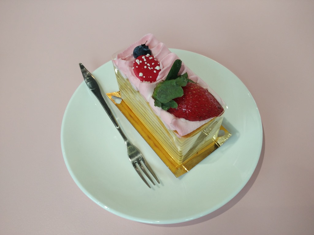 不过这也是满厉害的啦,看官网给的资料说『传承欧洲百年手工技术,严选香气饱满的日本紫罗兰小麦粉,融合细致的蛋香与天然枫糖的黄金比例配方,繁复烘烤层层堆栈精准控制火侯,将美味完全包覆在一层层的蛋糕中』,十层的蛋糕体,不知是怎样的工做出来的,口感吃起来绵密扎实,这是男生也会喜爱的甜点喔。