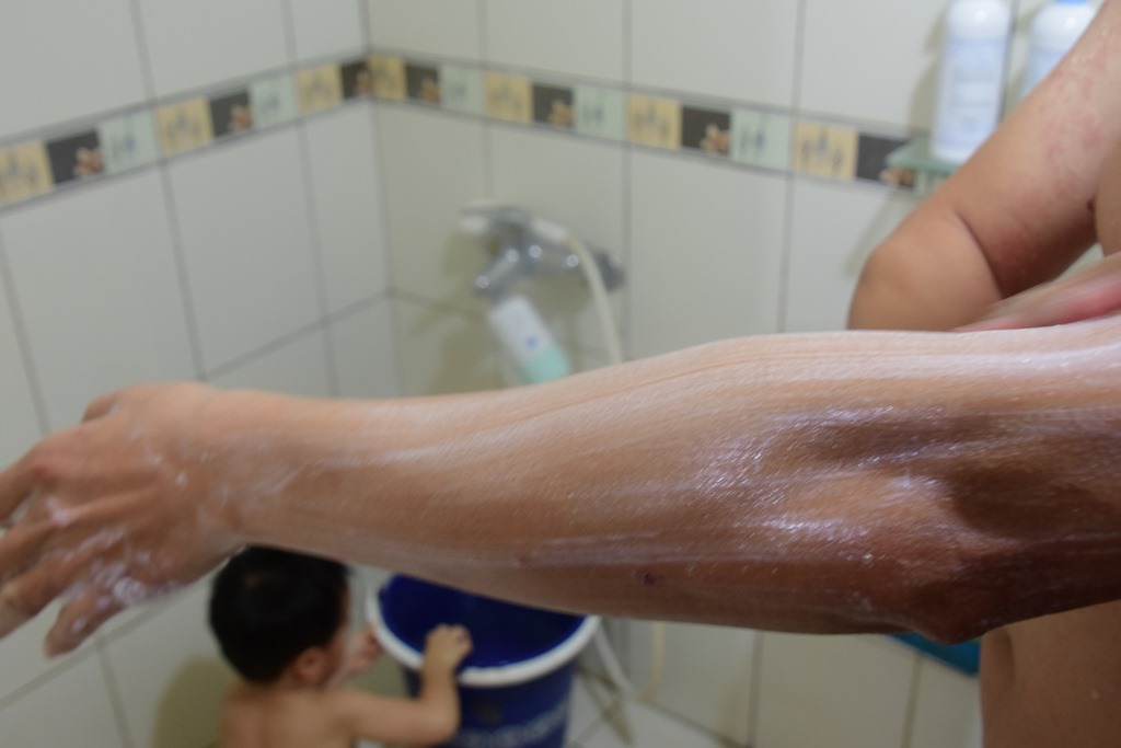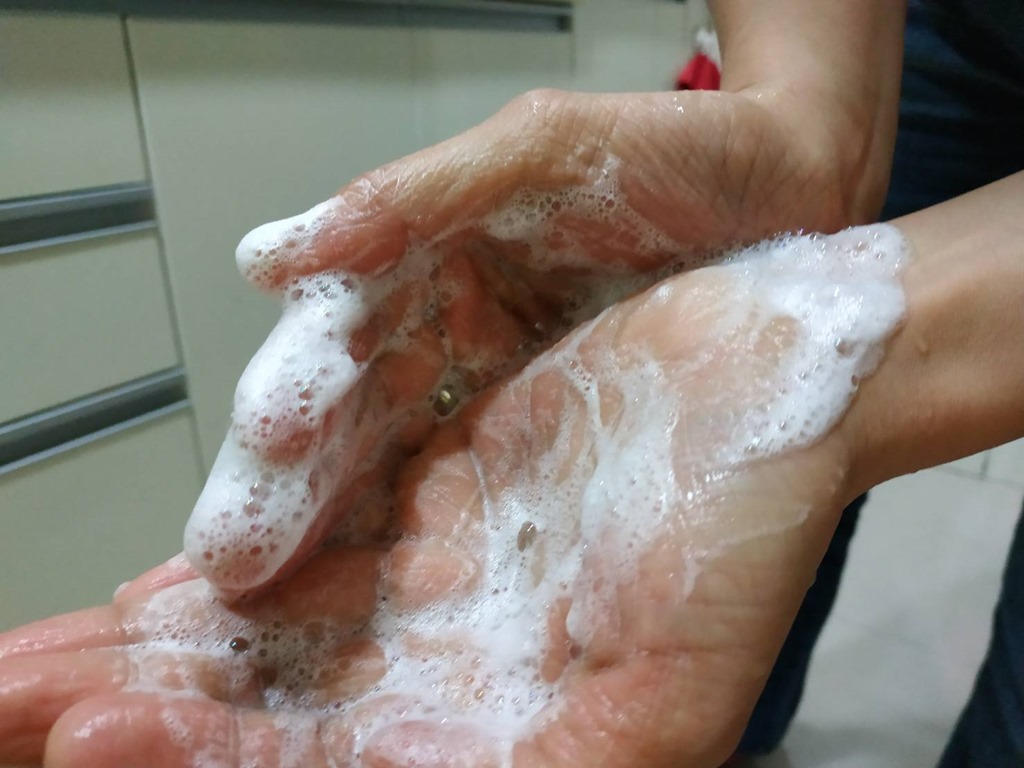 白白白,光看成分就有七个白字,再加上珍珠粉及川芎,哈哈!真的是九白!打开来闻闻,有淡淡的桧木香,光闻到这香味,就让我觉得我们家像在森林里,用这洗脸洗澡心情特好。怎么使用手工冷压皂才能发挥最大效用呢?千万不要直接把冷压皂放在水龙头底下弄湿,这会让皂容易处于潮湿的状态,用的时间相对就缩减了!先把手打湿,再抺上冷压皂,接着再用指腹搓出泡泡,如果有起泡网也可以派上用场,细致的泡泡能让皮肤更好吸收。