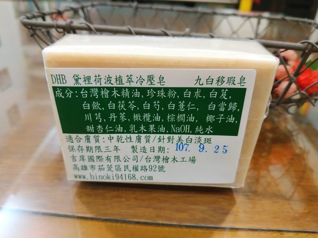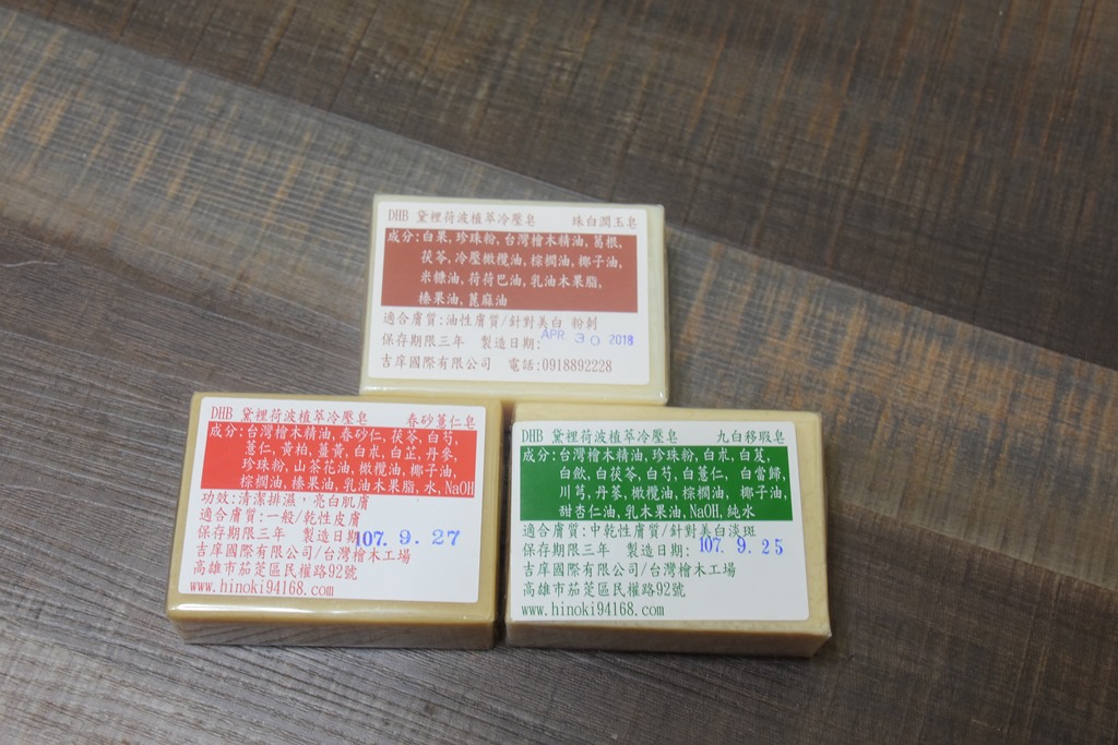 既然桧木精油对身体有帮助,那么搭配桧木冷压皂一起使用,一整天元气就会满满!姐收到后就迫不及待打开来用看看,唉呀,三块冷压皂要先用哪块好啊!最近皮肤因为健康及日晒因素,好想要恢复原来的白皙透亮,特别盯聆家人九白移瑕皂只有姐可以用,等用够了有剩才可以用喔!哈哈!