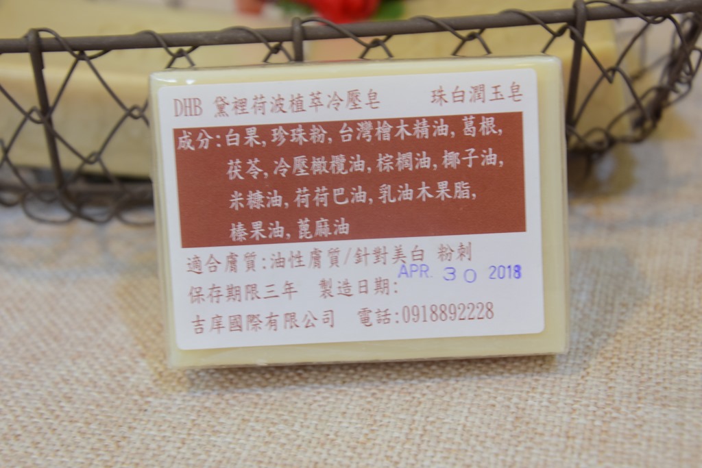 成分:白果、葛根、茯苓、珍珠粉、台湾桧木精油、冷压橄榄油、棕榈油、椰子油、米糠油、荷荷巴油、乳油木果脂、榛果油、萞麻油、NaOH及纯水