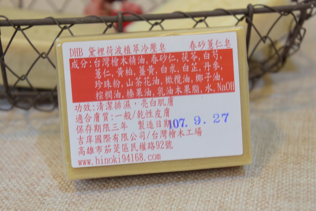 说到冷压皂,上网爬了一下文,才知道使用冷压皂相对于市面上大多数的热压皂来说安全许多,市面上使用廉价物料由脂肪酸皂化而成的香皂所采用的动植物油脂高温皂化,把原本原料里面所含的甘油去除又添加了人工香精,就是可以量产又便宜的香皂。桧木工场所使用的冷压皂是纯天然的中药成分,温和不刺激又含有丰富的微量元素,以及纯天然的植物油脂。每块冷压皂需要至少三十天的熟成时间,时间花费比较长但是对人体和环境更有保障。这对本来皮肤不太好的我来说,又让我学了一课,看来减少使用由机器大量生产的香皂,对我的皮肤会相对的有帮助。一般市面上清洁用品所加入化学物质,不但对人体不好,也会造成环境污染,冷压皂在与水接触的二十四小时内会被细菌分解成水和二氧化碳,是洗净能力强又环保的清洁产品。