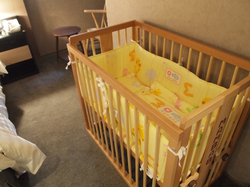 还特别跟服务人员了个婴儿床,这也比家里的好很多,看起来就很舒适,不过我们也知道儿子更想跟我们睡在舒服的大床上~